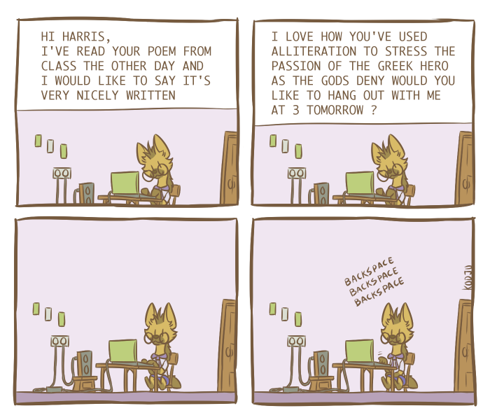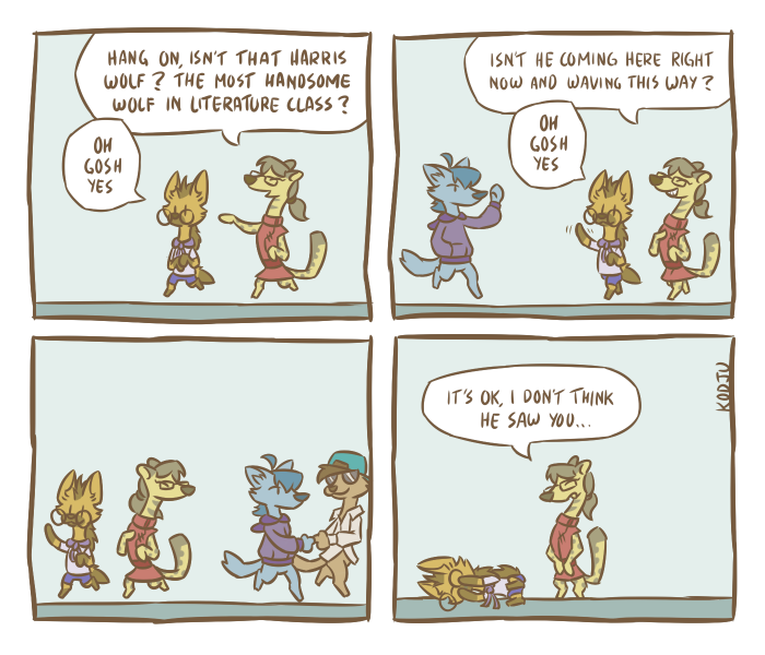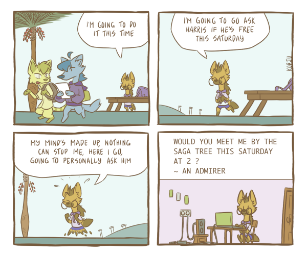 Hello ! Awkward Aardwolf was an old comic that I made in 2013 while still trying to learn how to use digital drawing programs, and what colour, size, and style would best fit a comic form. While I did think of leaving it as lost media because of how old and embarrassing it looked, I did in the end decide to compile it all into a page just for 'old time sake'. If you somehow manage to find this page, feel free to enjoy it ~