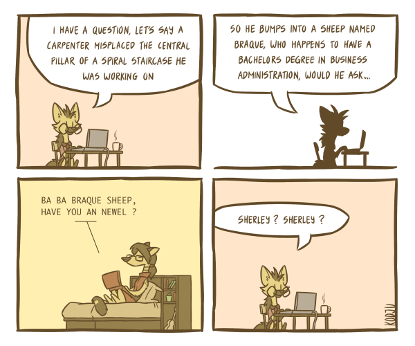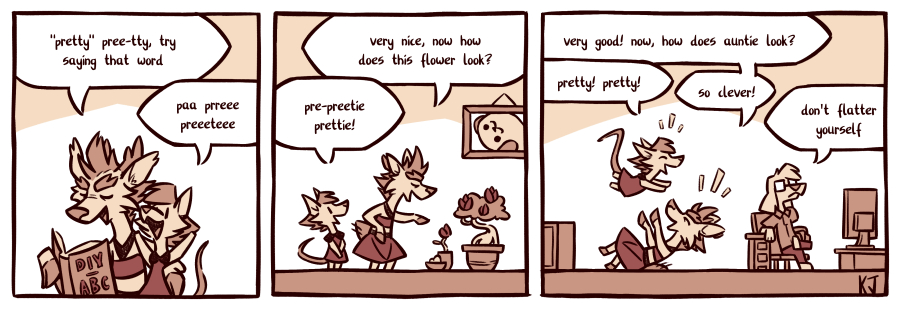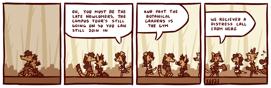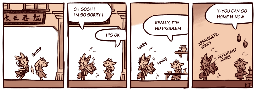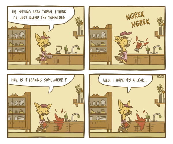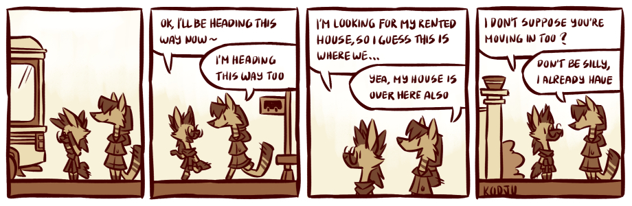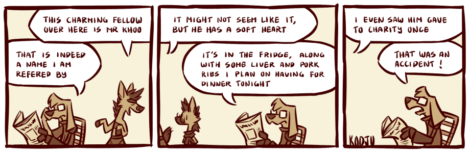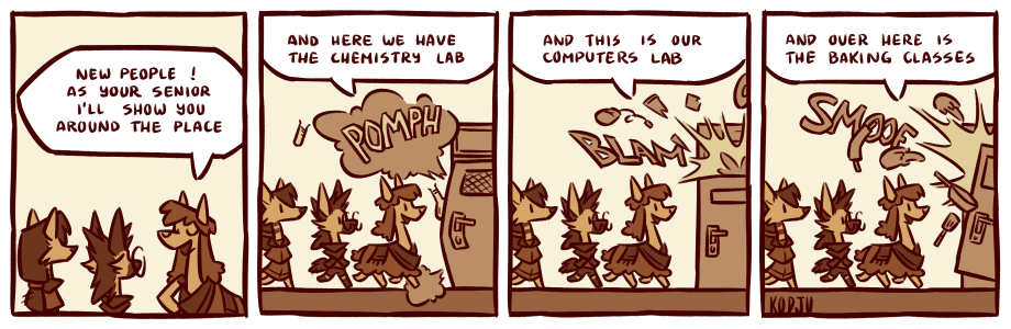 I made a reboot not only for the change in style but I also wanted to introduce a sort of story instead of single jokes the previous version had. But in retrospect, this first reboot I think was my best. Over time I found out I write better when it's straight jump from one point to the next without having to pad anything in the middle.