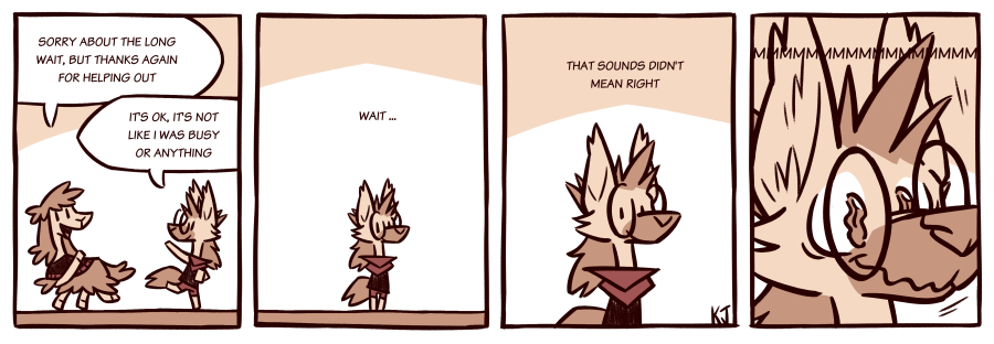 About this time I got too over myself and rebooted the story. I was reading other webcomics at the time and saw that they had a slow methodical way of storytelling which I thought I had to follow. But over time I had many strips which I feel are just unnecessary padding, but I could not remove because they were steps that was needed for the story. After a long while and too late I didn't feel the second reboot was worth it but at the same time I was too far in to reboot again and the comic slowly fizzled after that.